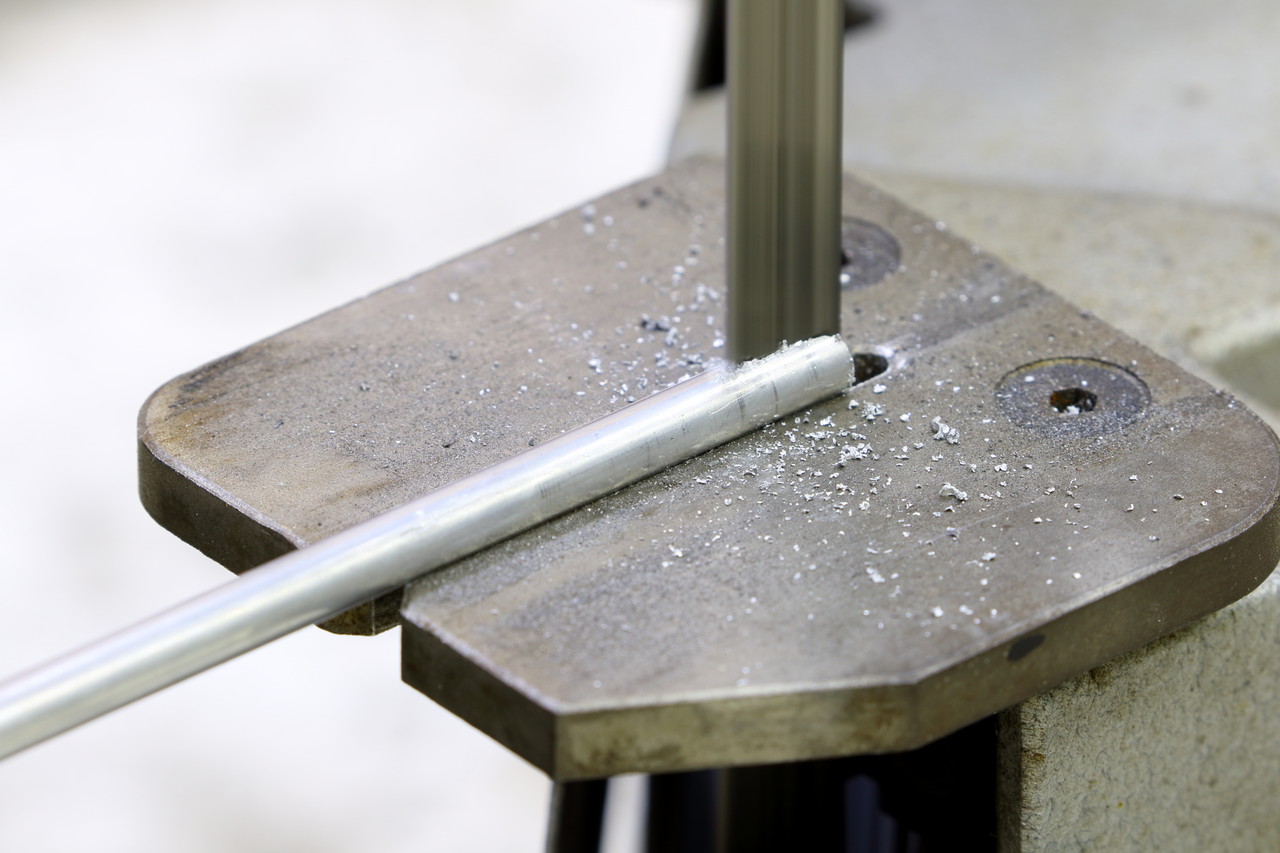 まずは以前までのやり方と同じようにホームセンターで買ってきた6mmのアルミの丸棒に鉄ノコやバンドソーで1cm 位の切れ目を入れて、