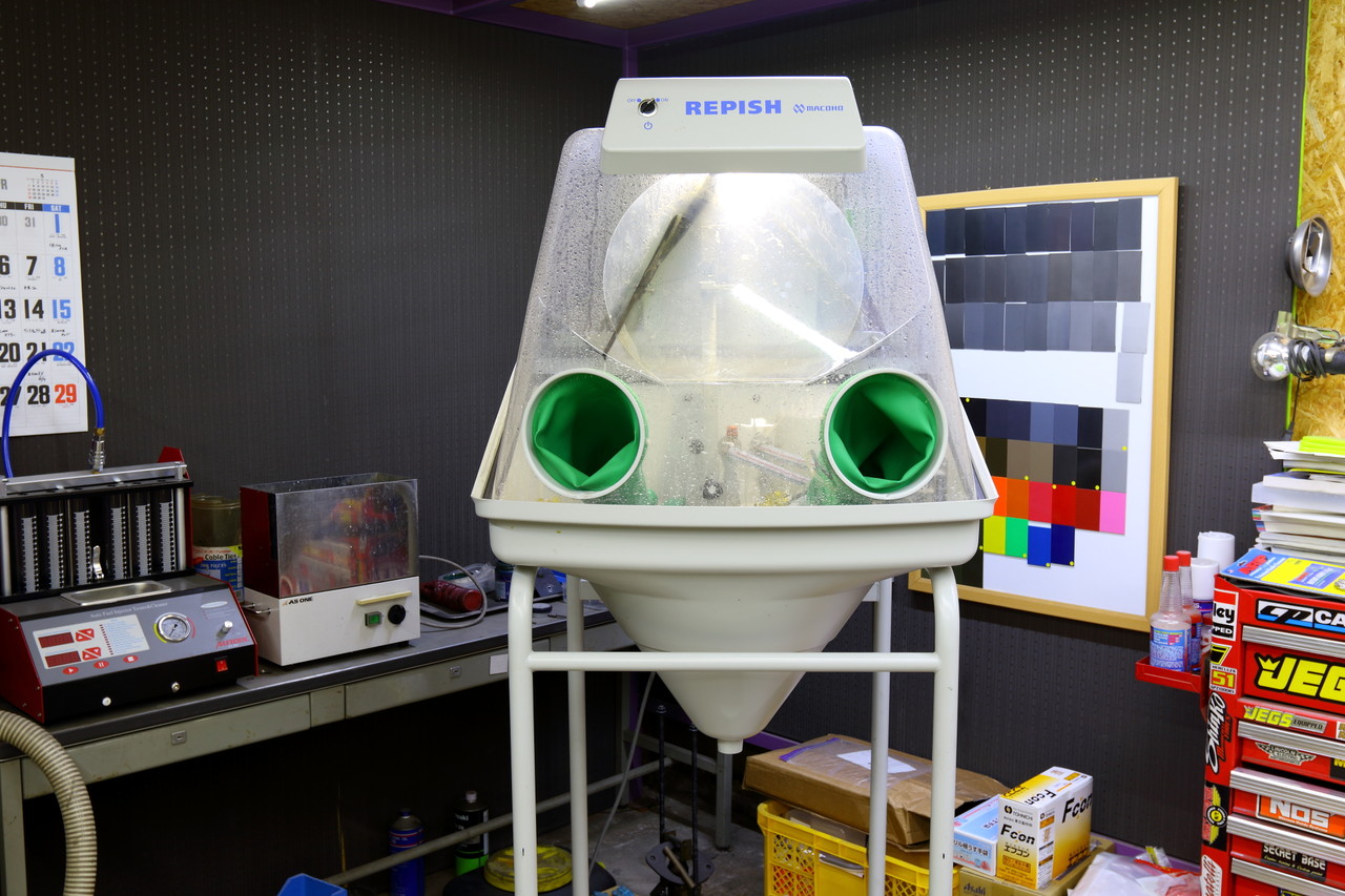 で、ウェットブラストといえば先駆者はマコーのココットが有名ですが、スペース的な問題と、うちは多分キャブレターやエンジン関係の部品位しか作業をしないので同じマコーからリリースされている一回り小型のレピッシュというタイプを選択しました。