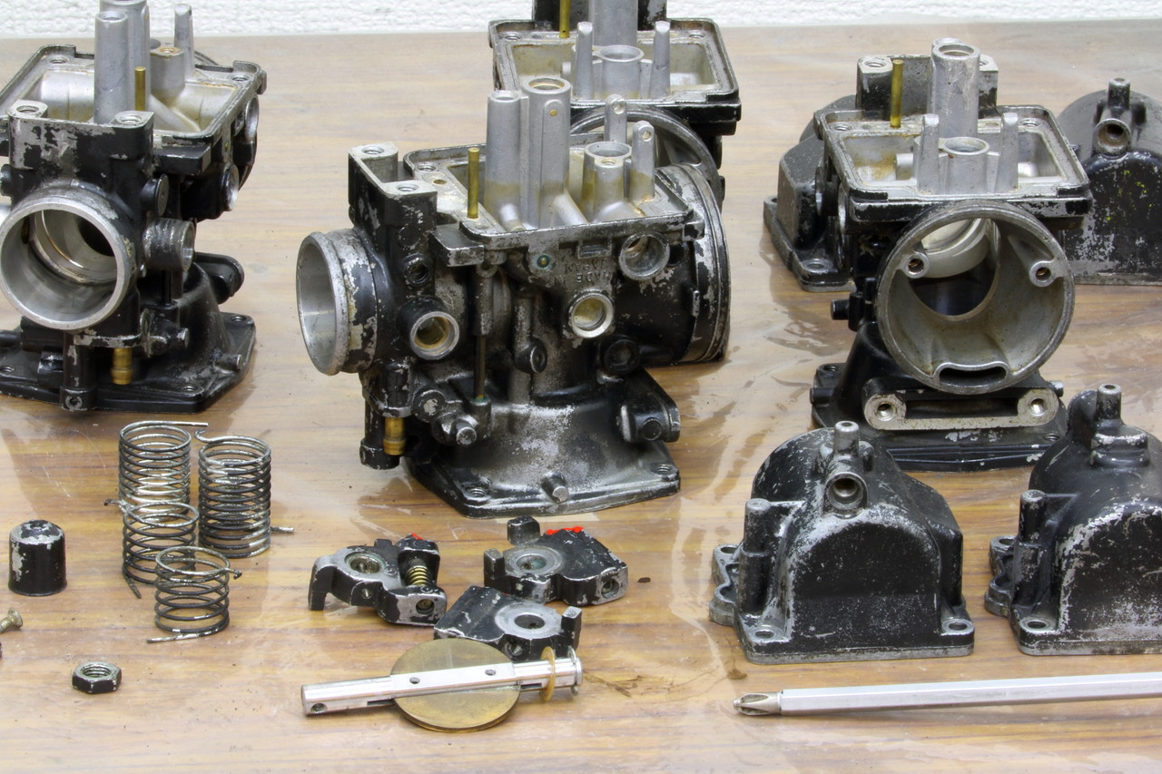 一般的なサンドブラスト(通称ドライブラスト)はコンプレッサーからの圧縮空気を利用してメディアと呼ばれる砂を勢いよく対象に吹き付けて塗装や錆などを落とすもので、その特性上 細かなメディアでは吹き付けた際に勢いが届かないので質量のある粒の大きな荒めのメディアを使用するしかなく、結果的に研磨力が強くなりキャブレターやエンジン内部のような繊細さが求められる部分には作業後の仕上がりが荒すぎたり作業後に隅々まで入り込んだ大粒のメディアがキャブレターやエンジン内部などの細かな通路を詰まらせるリスクもあって精密箇所への使用は厳しいのですが、