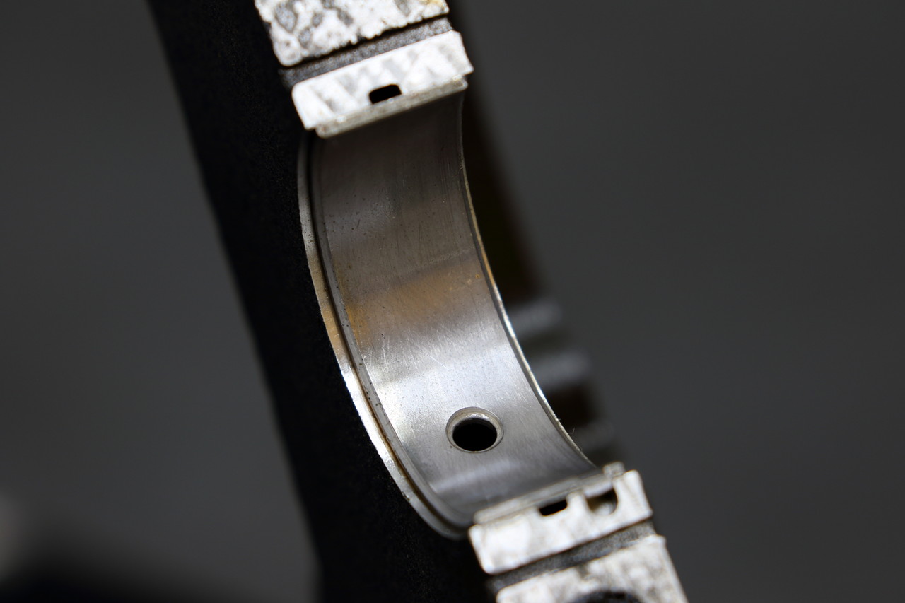 で、今回エンジンを分解してメタルのアタリの確認をしてみたところ、やっと綺麗なメタルのアタリが確認できました^^