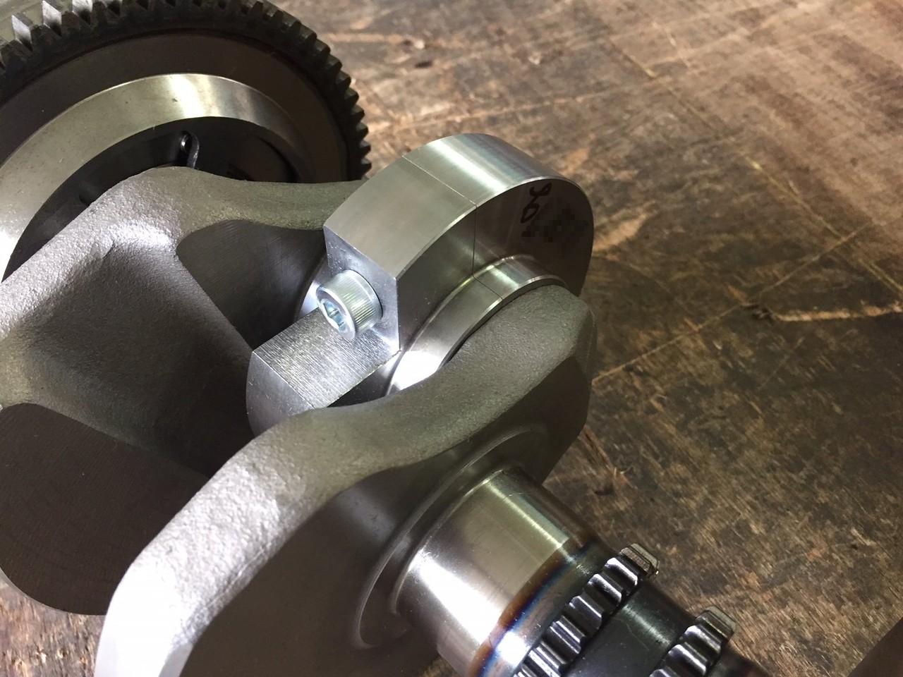 この純正に対して強化されたコンロッドとピストンのセットが純正比で非常に重量増に繋がっておりまして、V4 E/g でこの重量増は如何なものか?と、このピストンとコンロッドのセットに対するクランクのバランス作業をいつも内燃機加工をお願いしているナプレックさんにお願いをしたのですが、