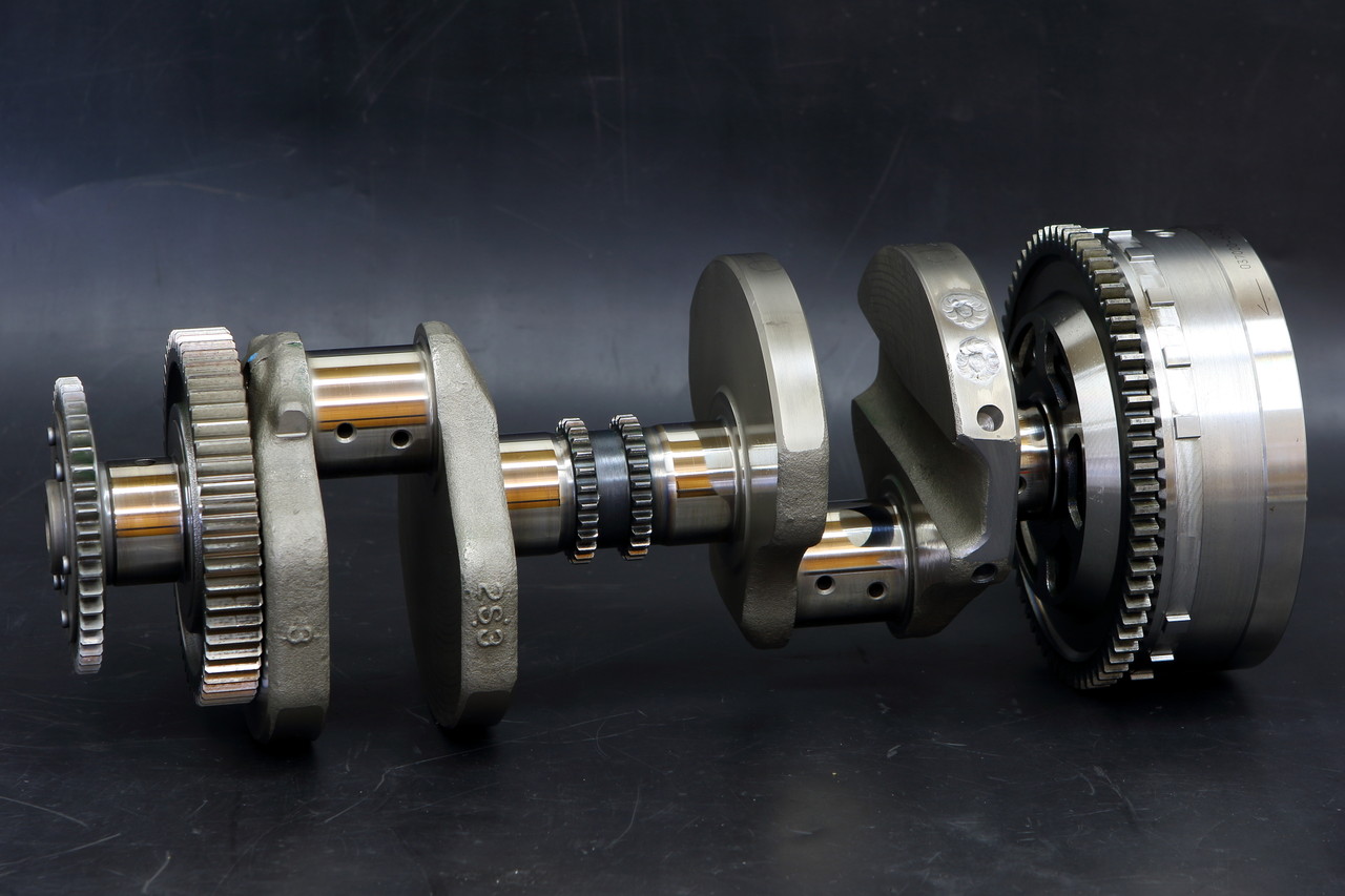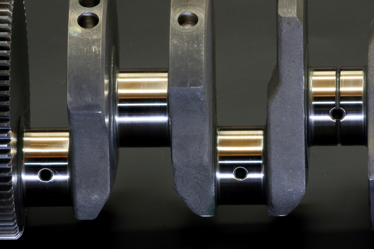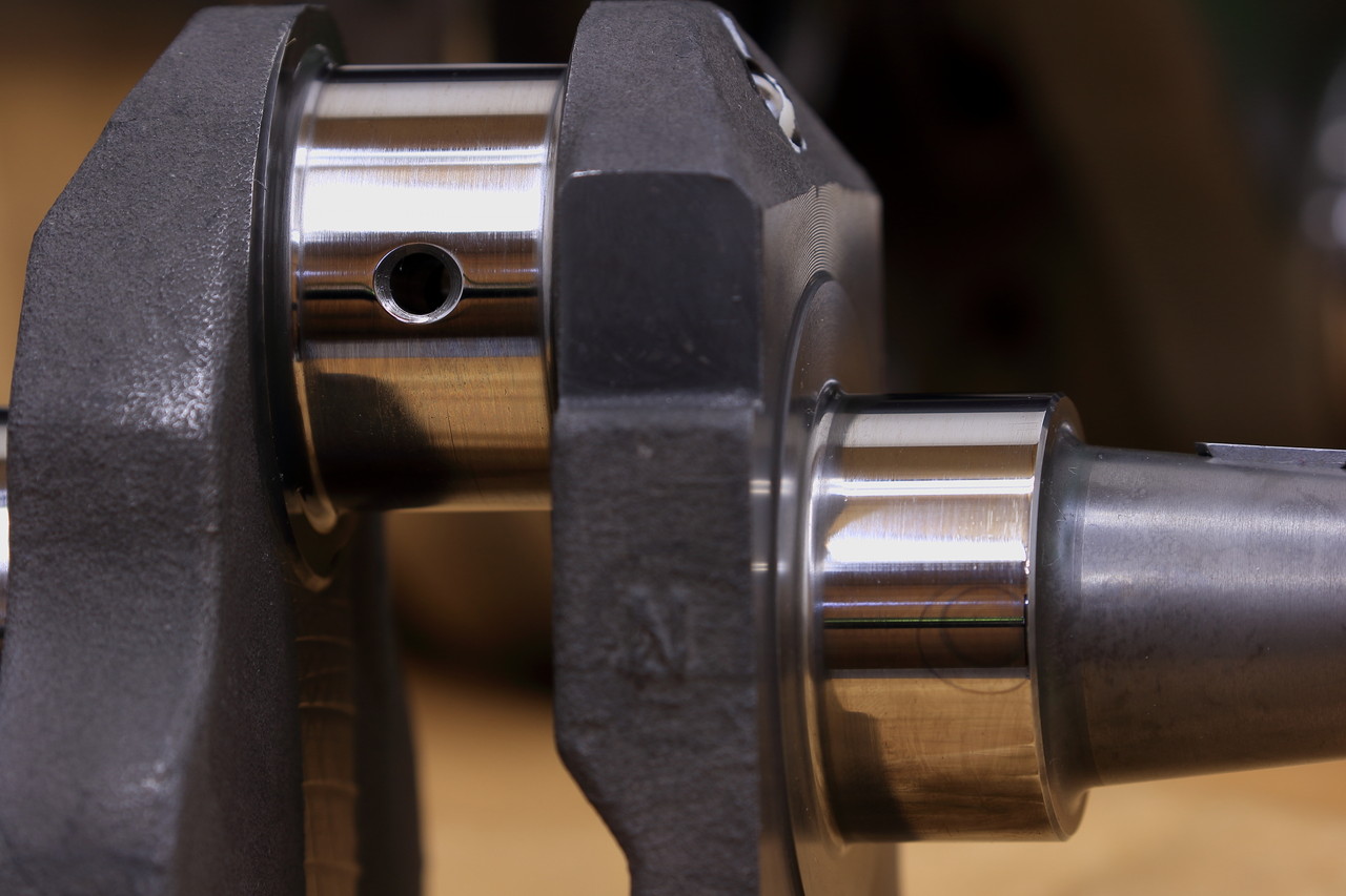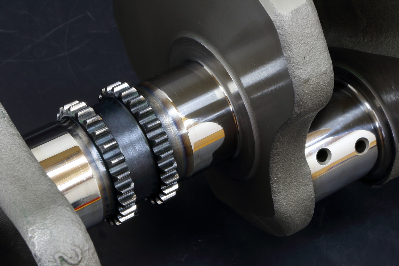 ピン径に支障のない範囲で綺麗に磨いて、最後にダイナミックバランスを施して仕上げを行ない、量産部品の中古ベースでも精度を上げて新たに仕上げ直す考えで、最近は磨き仕上げを気に入って毎回取り入れています。