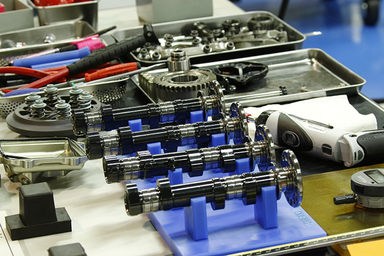 ちなみにこちらはホンダが昨年販売した2千万円を超えるRC213Vの組み立て現場の拾い物画像ですが、手前に見えるカムシャフトの面圧の掛かるカムローブにはDLC加工が施されていますが、ジャーナル面はわざわざマスキングを施して別の表面仕上げを採用しているのが分かり、きっとホンダもお金が足りなかったんですね。とか言ったらぶっ飛ばされそうなのでやはり表面処理は適材適所なんだなぁ・・と。