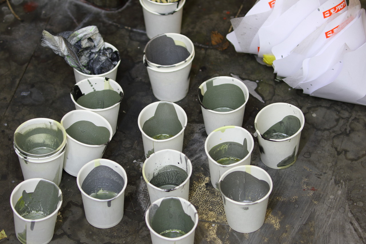 今回は安っぽい感じには仕上げたくないとの事で、安い缶スプレーのような単純なシルバーでの仕上がりは却下で、希望としては鉄っぽさをイメージしたノスタルジックな雰囲気に合う仕上がりが希望との事で、こちらのミスでシュアショットさんの顔に泥を塗るわけにはいかないと、シルバー、黒、ゴールドしかないラインナップを組み合わせてショーの時の無垢の鉄管の時のイメージに近づくよう絶妙なスチール感を演出して仕上げてみました^^