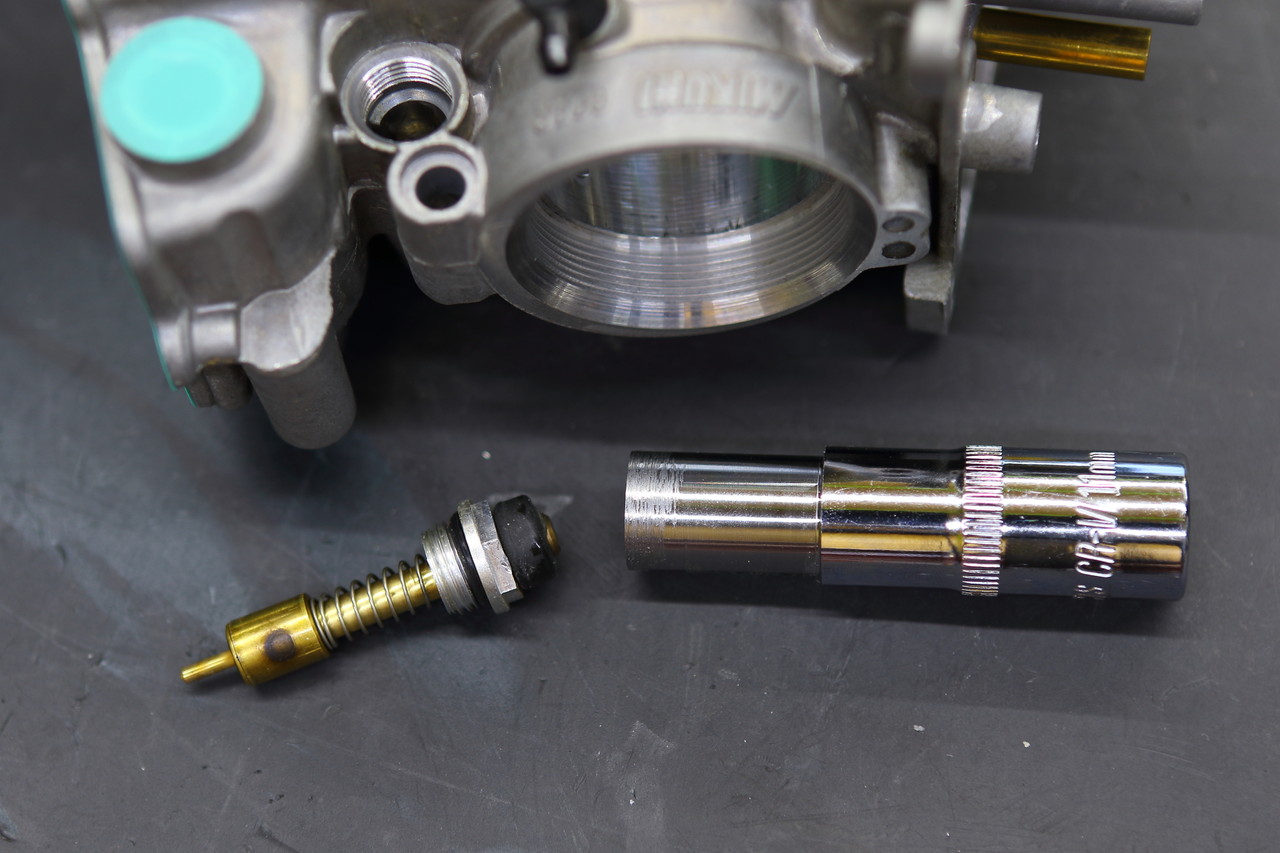 以前にTMRの分解時にこのチョークバルブの11mm頭のネジを外すのに、普通の工具だとキャブ側とのクリアランスが狭すぎてラチェットの駒が入らず、