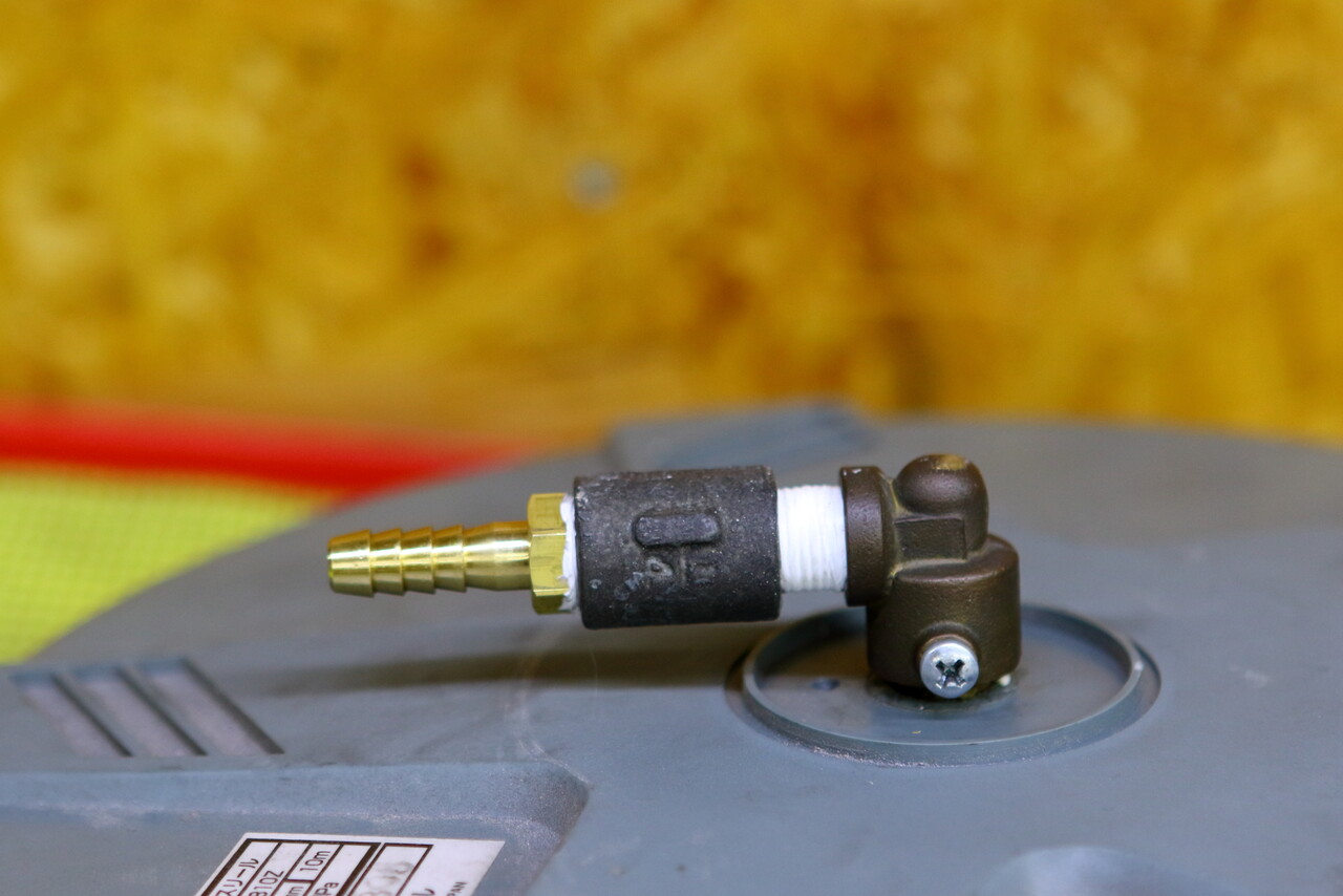 で、出品時には作動確認が取れていないという理由でジャンク扱いだったので、実際にジャンク品なのかをチェックするためコンプレッサーと繋いで圧縮空気を送って問題の有無を確認してみると、接続部分からのエアー漏れと内部からもエアー漏れの「シュー」っという音が聞こえてくるのでホースが劣化しているのか?はたまた Oリングが逝ってしまってるだけかな?と、内部の状態を確認する為、早速分解して確かめる事に。