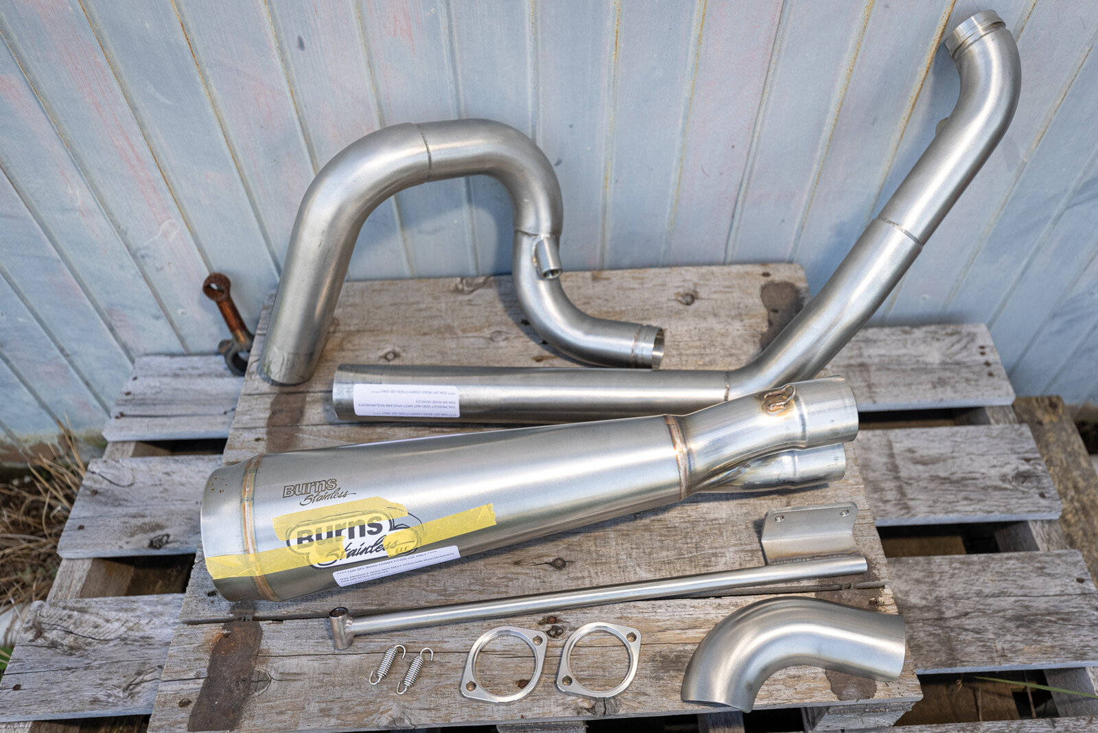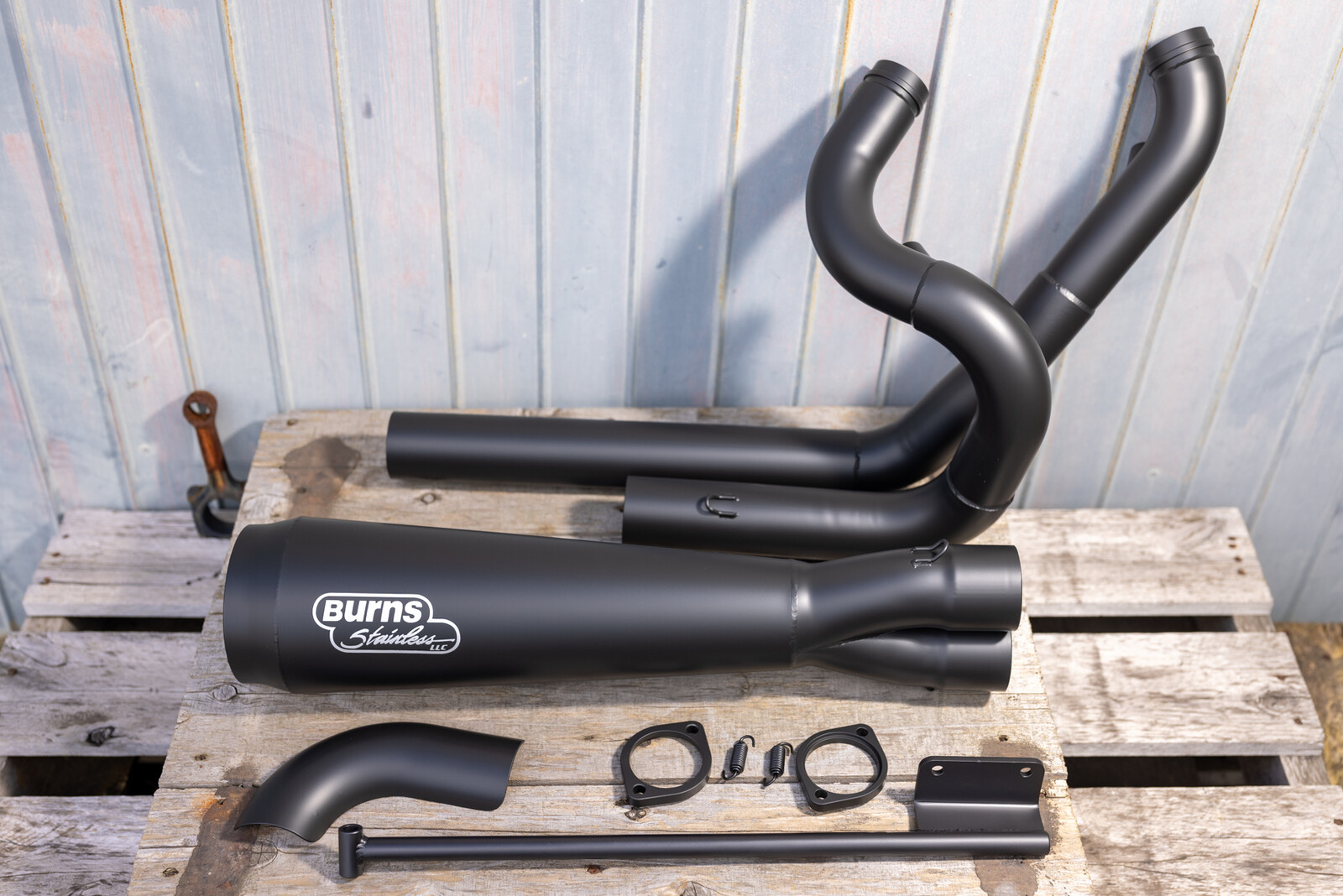 そしてこちらはいつもお世話になっているハーレーの輸入パーツを扱っているHRD Performanceさんからご依頼をいただいたBurn’s Stainless社製のEXHですが、取り付ける車体に合わせてロゴの位置を指定していただき、