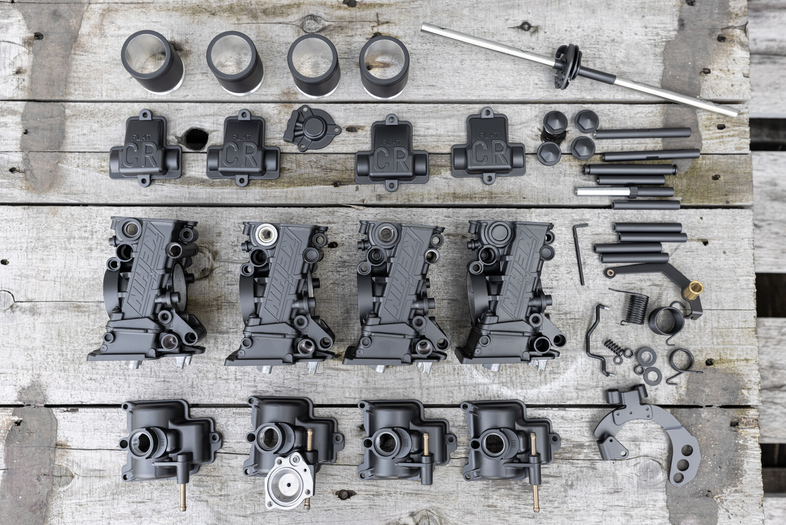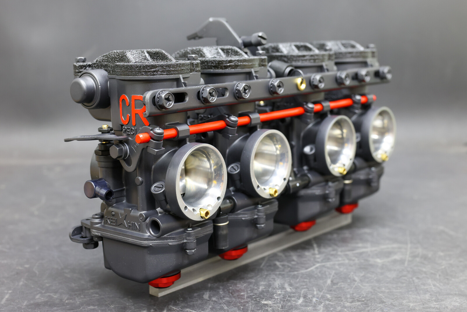 CRキャブレターは半艶ブラックベースに艶有ブラックを細かく入れさせて頂いて真っ黒で仕上げさせていただきました。