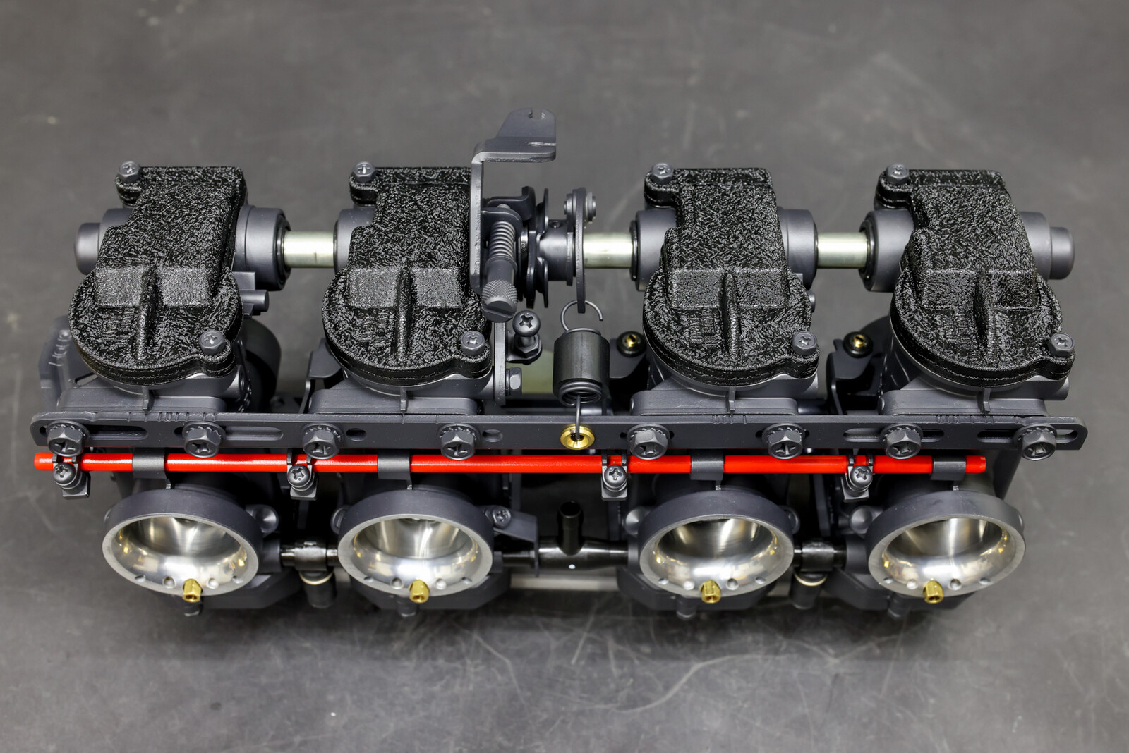 こちらのCRキャブレターの製作をご依頼いただいたオーナー様は以前にもFCRキャブレターの製作のご依頼をいただいており、今回はリピートでの製作のご依頼だったのですが、今回はワンポイントでチョークシャフトのみ赤にとの指示を元に製作をしてみたらこうゆうワンポイントの作り方もあるのか・・・と参考になると共に凄くアリな仕様だなと。