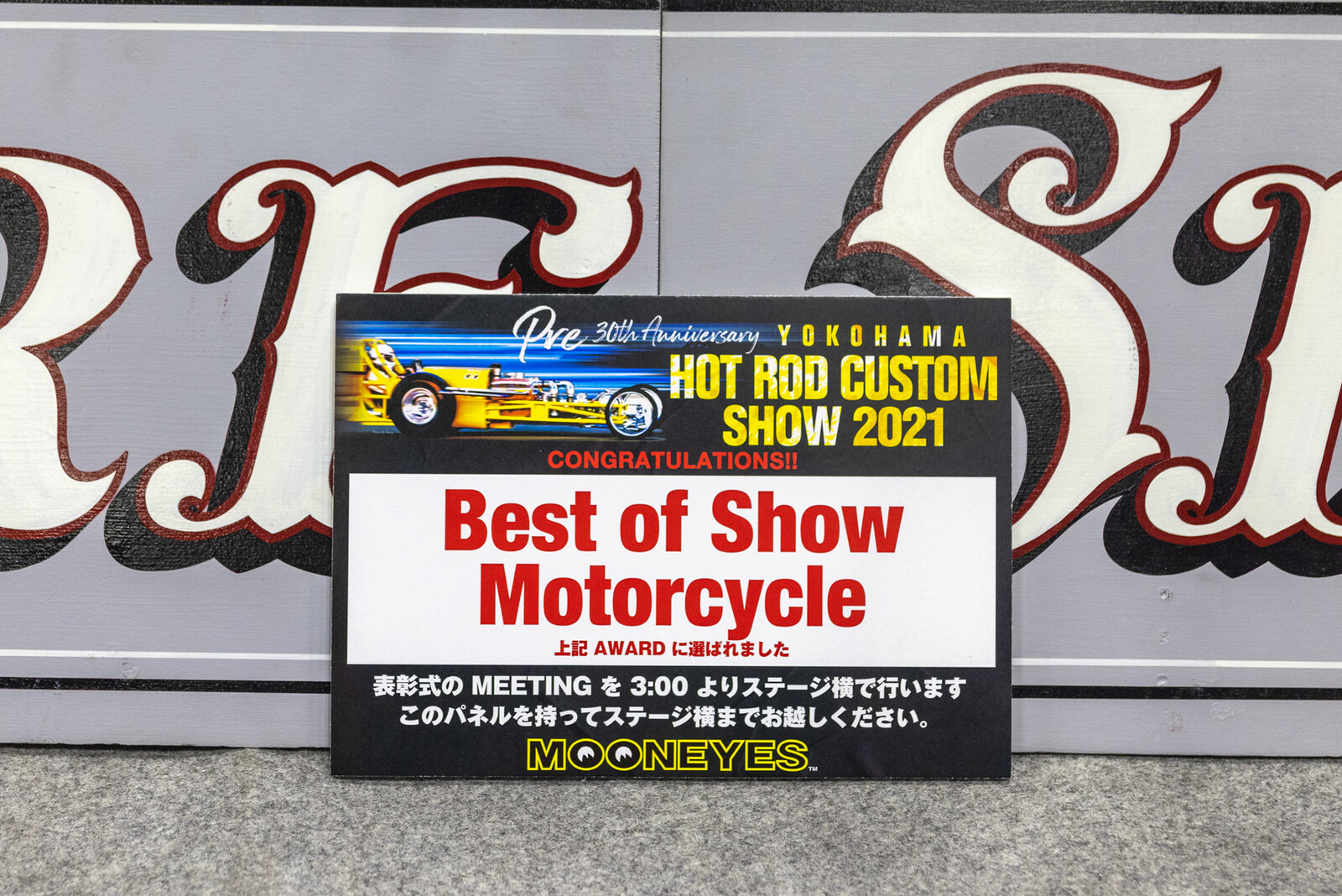 またしても一位の栄冠となるBest of Show Motorcycleに選ばれてホットロッドカスタムショーにて二連覇を達成されたようで、素晴らしいの一言です^^