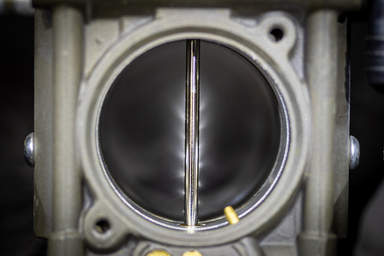 まず初めに一番多い不調を招くパターンはセッティング不良によるVシール周りへのダメージで、不調で入庫してくる多くのTMRキャブレターは画像のキャブレターのようにスライドバルブ周りが燃料の成分で湿っている個体が多く見受けられるのですが、このようなセッティングの濃い状態で使用を続けていると・・・、