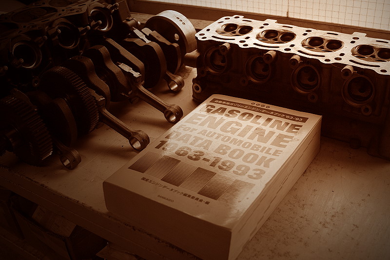 このエンジンデータブックは63〜93年までの30年間分の国産自動車エンジン部品の各寸法データ、材質、運動量などが事細かに書かれているのでかなり分厚く重いですが、時代の変化、同系進化など調べてると意外に面白いですよ。