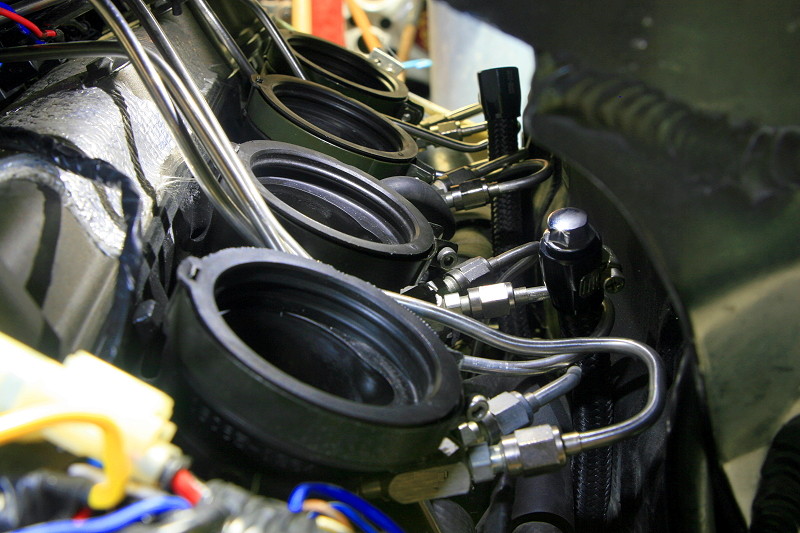 どうもNOSを使用した際にたまに息継ぎのような症状が一瞬出たり、ジェットが大きくなると綺麗な混合気にならないのか失火もしているような状況で、12Rの狭いスペースの関係でこの位置にフォガーノズルを取り付けたものの、噴射時には70kgf/cm2もの高圧ガスがポート内の流れを遮るように噴射してしまうので、NOS噴射時には相当な勢いで吸気ポート内の流れをかき乱しているのでは無かろうか・・・、いや、確実にかき乱してるだろうと。
